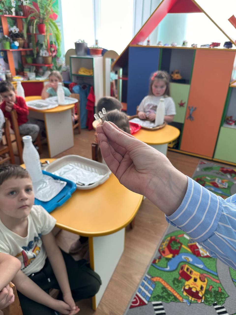“Чарівний світ електрики” – день 3 Інженерного тижня в Уличненському ЗДО “Диво”. Це день, упродовж якого наші дошкільнята дізнавались що таке електричний струм і заряд, звідки з’являється світло, удосконалили навички безпечного поводження з електроприладами, а ще самі спробували створити власні електроприлади: кишеньковий електроліхтарик, власний світильник і електробраслет. Тема третього дня стала надзвичайно актуальною і викликала у дітей незвичайні емоції захоплення, стимулювала пізнавальний інтерес, інженерне мислення та винахідницькі навички.